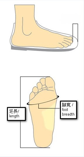 一般韓國鞋款的尺碼是以毫米(mm)作為量度單位,例如:腳尖至腳踭全長230 mm,加上鞋的質料有一定厚度,建議客戶應選購235 mm或240mm的尺碼。